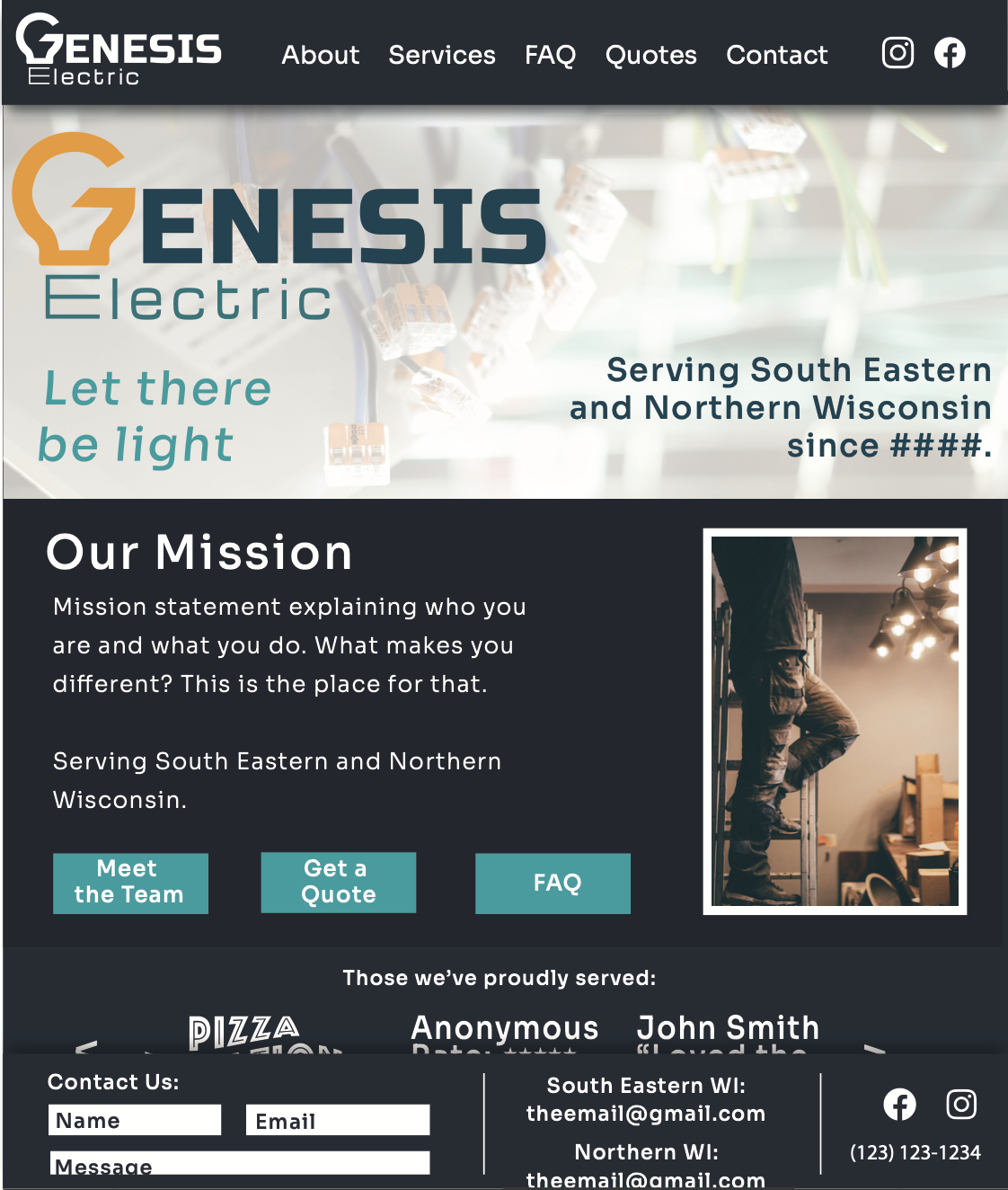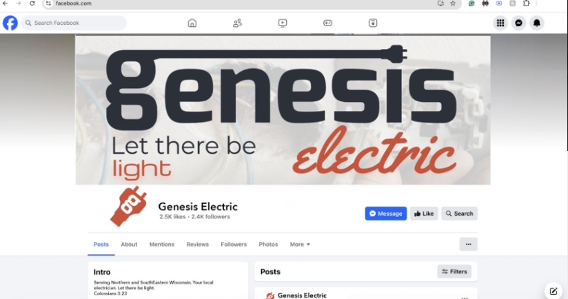 Genesis Electric is a family-run company providing homeowners and commercial spaces with quality electrical work. They are faith based with the tagline “Let There Be Light”.