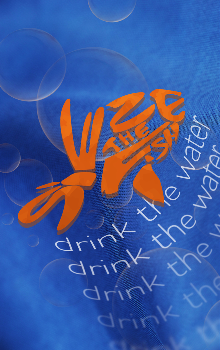 The fish is peaking out in front of the word “water”, separate from the school of fish, making his own way.